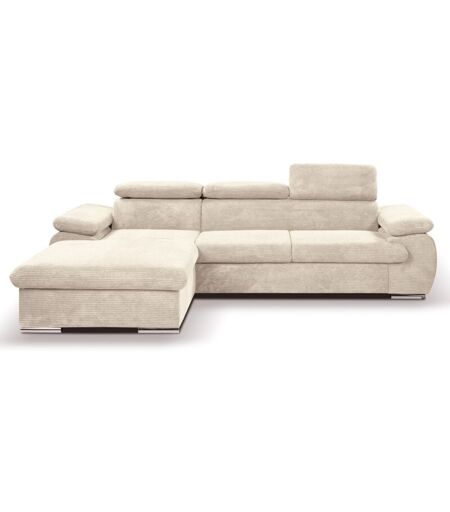 Casa Baoli - Canapé d'angle gauche convertible velours côtelé beige avec têtières - kost