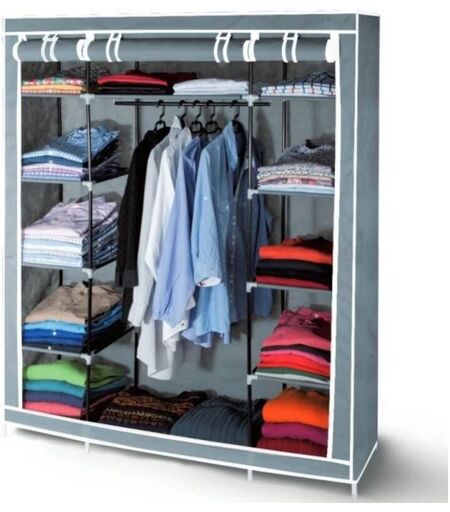 Armoire de rangement dressing XXL Equipez-vous d'un grand dressing pour ranger tous vos vêtements ! Grâce à la penderie et aux étagères de cette armoire de rangement , vos chemises, pantalons, pulls, vestes...trouveront leur place. L'armoire est munie de zips sur toute la hauteur. Ceci lui permet une ouverture et une fermeture facile. Informations techniques Matière : tissu non tissé 65 g/m² tubes en acier Dimensions : hauteur : 177 cm largeur : 135 cm profondeur : 43,5 cm épaisseur des tubes : 0,23 mm diamètre des tubes : 13 mm Poids : environ 4,5 kg Coloris : rouge bordeaux, bleu marine ou gris Chaque étagère peut supporter un poids d'environ 3 kg ...