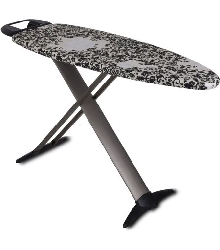 Planche à repasser design pliable Grande planche à repasser ovale fabriqué en Europe. Dimension du grand plateau ergonomique : 130x47 cm. Poids 7.7Kg. Hauteur réglable jusqu'à 93 cm. Verrou de sécurité. La table ne peut pas s'effondrer accidentellement. Elle est dotée d'un système de fermeture sécurisé. Grand repose fer. Dimension: 43x28 cm. Planche à repasser stable en aluminium. 3 pieds solides et ergonomiques. Epaisseur de l'acier : 0.8 mm. Pieds antidérapants. Structure en aluminium durable et solide. Housse 100% Coton qui favorise la glisse du fer et la durabilité de la housse avec mousse 5 mm pour plus de confort de repassage. Housse amovible lavable. Rembourrage confortable ultra épais pour une surface de repassage lisse. Dotée d'un repose-fer vapeur pour les droitiers et les gauchers. Repose-fer qui s'adapte à la plupart des centrales vapeur et fer classique. Ce repose-fer est résistant à la chaleur. Planche à repasser design pliable professionnel. Garantie usine 2 ans ...