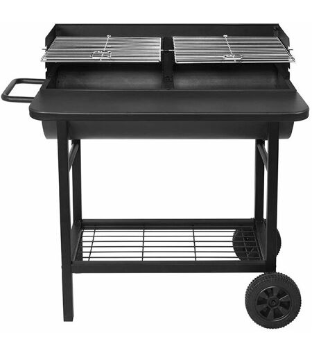 DESCRIPTION GÉNÉRALE Le barbecue au charbon ALABAMA est équipé de deux grilles de cuisson en acier chromé, permettant de cuire simultanément des aliments à différentes températures. Les grilles sont réglables sur trois hauteurs pour une cuisson précise. Il comprend également une grille à charbon, une grille de rangement au niveau des pieds, et une grande tablette frontale pour le plan de travail. Facile à déplacer grâce à ses deux roues et sa poignée, il est conseillé de le nettoyer lorsqu'il est chaud pour un entretien rapide. SPÉCIFICATIONS TECHNIQUES Barbecue double grilles au charbon de bois 3 hauteurs de cuisson : 76,5 cm - 80 cm - 83,5 cm Dimensions (incluant la tablette) : 91 x 68,5 x 83,5 cm Grilles de cuisson : 2 grilles de 39,5 x 35,5 cm chacune Dimensions cuve : 76 x 41 x 20 cm Cuve et pare-vent en acier Épaisseur cuve : 0,8 mm Peinture époxy traitement poudre Conformité Européenne : EN1860-1 A monter soi-même Poids : 14,6 kg Coloris : noir ...