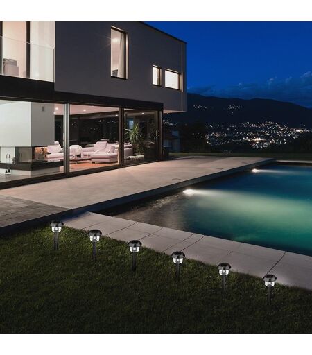 BALISE SOLAIRE LED : 8x Alesia est un lot de balises solaires abase LED blanc froid qui possede jusqu'a8 heures d'autonomie de fonctionnement. Chics et design, elles baliseront votre extérieur en toute discrétion. ...