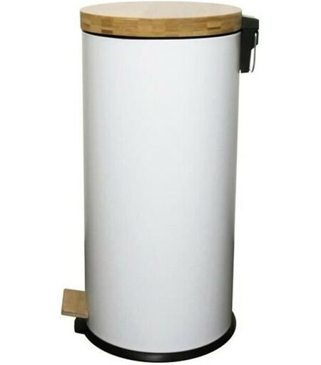 KITCHEN MOVE Poubelle de cuisine a pédale Forest - 30L - Blanc mat - En acier inoxydable et bois avec seau - Facile a nettoyer - Anti-trace de doigts - Poignée de transport solide - Facile a déplacer ...