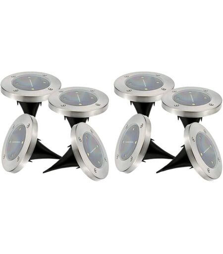 LUMI JARDIN Lot de 8 spots solaires ronds decky Argent Acier inoxydable D12cm