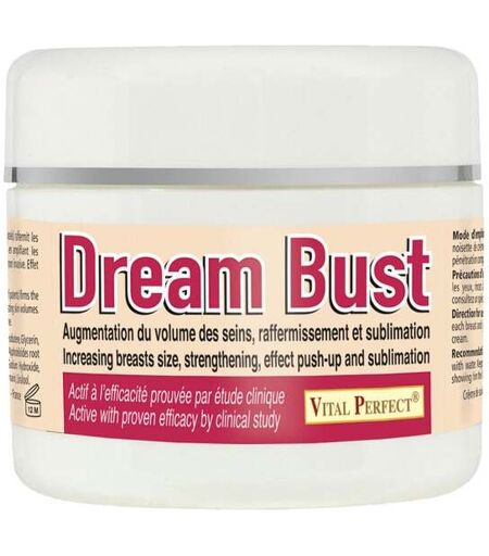 La Crème pour les seins Dream Bust de Vital Perfect s'adresse à toutes femmes qui souhaitent sublimer leur poitrine et la raffermir. Cette crème de soin agit naturellement, de façon non invasive et sans activateurs homonaux. Dream Bust bénéficie de l'actif Sarsasapogenine (étude clinique et brevets déposés) issu de la plante Anemarrhena asphodeloides. C'est grâce à ce principe que la crème de soin peut raffermir la poitrine et retendre les tissus. Dream Bust pourrait amener un effet "push-up". Elle pourrait rendre plus pulpeuse votre poitrine et sublimer votre décolleté. Conseils d'utilisation : appliquez une à deux fois par jour une noisette de crème sur chaque sein et massez délicatement jusqu'à pénétration complète de la crème. Ingrédients : aqua, caprilic/capric triglyceride, hydrogenated polyisobutene, glycerine, cetearyl alcohol, glyceryl stearate, cetearyl glucoside, anemarrhena asphodeloides extraits de racines, tocopherol, ethylhexylglycerin, phenoxyethanol, parfum, sodium hydroxide, chlorphenesin, caprylyl glycol, ethylhexylglycerin, carbomer, geraniol, citronellol, courmarin, linalol. ...