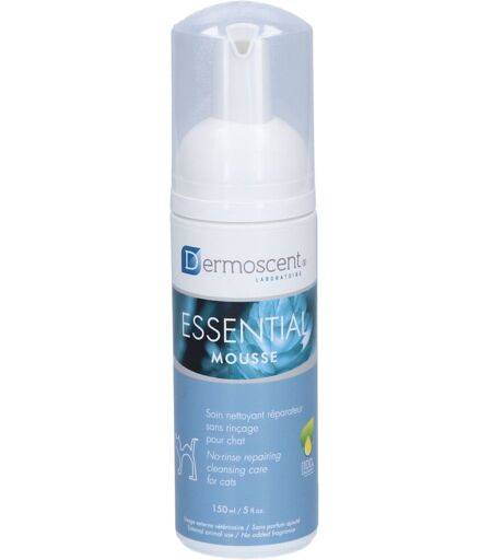 Dermoscent - Mousse essentielle KatDermoscent Essential Mousse est une mousse nettoyante sans rinçage spécialement conçue pour les chats sensibles à l'eau ou difficiles à laver. La formule à base d'ingrédients naturels tels que l'huile de chanvre, l'huile de niaouli et des extraits de lichen et de racine de saponaire nettoie la peau et le pelage sans rinçage, hydrate, réduit les odeurs et restaure la barrière cutanée. Idéal pour les chats à la peau sensible, pour un nettoyage topique ou comme alternative au bain traditionnel.BénéficesNettoie sans rincerHydrate et apaise la peauNeutralise les mauvaises odeursContient des ingrédients naturelsConvient aux peaux sensiblesFlacon pompe pratique sans gaz propulseurIndicationDermoscent Essential Mousse convient aux chats sensibles à l'eau, difficiles à laver ou à la peau sensible. Elle est idéale pour la toilette locale après les promenades, en cas d'incontinence ou pour les chats en convalescence. La mousse aide à éliminer la saleté, neutralise les odeurs et soutient la barrière cutanée, ce qui en fait une alternative pratique au bain traditionnel.ApplicationAgiter le flacon avant utilisation. Appliquer une quantité de mousse dans la paume de la main ou directement sur le pelage sec du chat. Masser doucement en évitant le contact avec les yeux et le nez. Enlever l'excès de mousse avec une serviette sèche et laisser le pelage sécher à l'air libre. Utiliser aussi souvent que nécessaire.IngrédientsAqua, Sodium Cocoyl Apple Amino Acids, Olus (Vegetable Oil), Melaleuca Quinquenervia Oil, Cucurbita Pepo (Pumpkin) Seed Extract, Saponaria Officinalis Extract, Linoleamidopropyl PG-Dimonium Chloride Phosphate Dimethicone, Guar Hydroxypropyltrimonium Chloride, Usnea Barbata (Lichen) Extract. ...