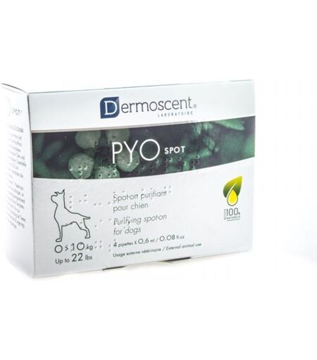 PYOspot® est le 1er et unique spot-on spécialement formulé pour aider à purifier et rétablir l’équilibre de la flore cutanée chez les chiens sujets aux déséquilibres récurrents du microbiote cutané. Ce soin breveté aide également à renforcer la barrière cutanée préservant ainsi l’hydratation cutanée.1 pipette par semaine aussi longtemps que nécessaire.Huiles végétales de chanvre et de tamanu, riches en acides gras essentiels (Oméga 3 et 6), indispensables pour renforcer la barrière cutanée de vos animaux mais qu’ils ne sont pas capables de synthétiser Complexe purifiant innovant qui associe un extrait de neem, à une synergie d’huiles essentielles composée de palmarosa, sariette des montagnes, sauge, lavandin, eucalyptus citronné et ajowan Agent bio-diffusant qui permet une diffusion homogène des actifs à la surface de la peau à partir d’un seul point d’application, en utilisant le sébum présent sur l’ensemble du corps de l’animal. ...