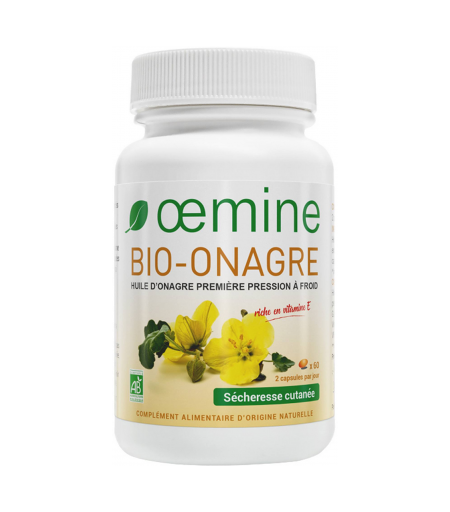 Oemine Bio-Onagre est un complément alimentaire d’origine naturelle à base d’huile d’onagre biologique garantie pure et première pression à froid. Elle est filtrée, et enrichie en vitamine E naturelle pour la protéger de l’oxydation. Puis, cette huile étant très fragile, elle est mise en capsules pour lui conserver toutes ses qualités. Cette huile riche en oméga-6 protège les cellules du stress oxydatif. Ses acides gras polyinsaturés aident à maintenir un confort féminin optimal, et une peau saine et hydratée. L’onagre est une plante dont les graines sont riches en acide gamma linolénique (G.L.A.), des acides gras polyinsaturés de la famille des oméga-6. Ces acides gras sont indispensables à de nombreuses fonctions physiologiques. L’huile d’onagre est conseillée chez la femme pendant la deuxième partie du cycle menstruel, car elle contribue à soulager les symptômes prémenstruels. En cures de 20 jours par mois après la ménopause car elle contribue à soulager les symptômes qui lui sont liés. Oemine Bio-Onagre contribue également à maintenir la peau et les muqueuses saines et bien hydratées par sa richesse en vitamine E naturelle. Huile d’onagre biologique avec des vitamine E végétales qui contribuent à protéger les cellules contre le stress oxydatif. A noter : les capsules peuvent être percées et appliquées directement sur les zones de peau sèche et au niveau des muqueuses. ...