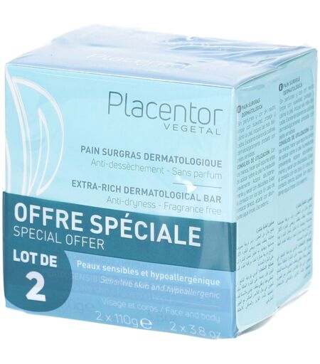 LABORATOIRES SICOBEL PLACENTOR VEGETAL Pain Surgras Dermatologique Lot de 2 Savon 220 g