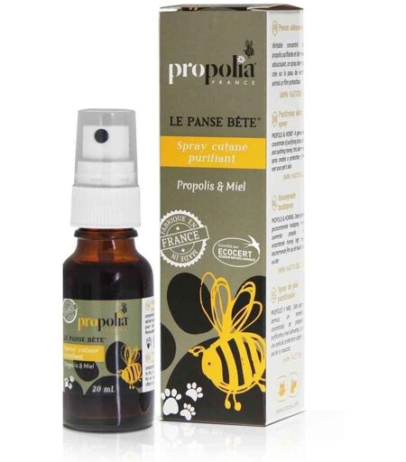 Votre animal a eu un accident cutané ? Ayez le réflexe protecteur et purifiant Propolia® ! Véritable concentré de propolis purifiante et de miel adoucissant, ce spray crée sur la peau de votre compagnon quatre pattes un film protecteur 100% naturel. Contenance : 20ml. ...