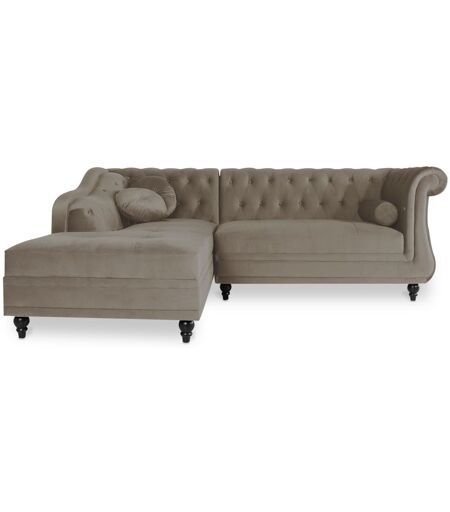 Intensedeco - Canapé d'angle gauche Empire Velours Taupe style Chesterfield