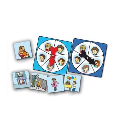 But du jeu : identifier et classer les différentes situations suivants les 5 émotions abordées : la peur, la tristesse, la colère, l'amour, la joie. Les enfants apprennent à les identifier, les mimer et à en parler. Contenu : 4 supports de jeu en plastique 20 x 13 cm ; 35 cartes d'activités en plastique 6 x 6 cm ; 2 cadrans en plastique 20 x 20 cm correspondants aux émotions, 1 guide. Pour 1 à 4 enfants. A partir de 3 ans. ...