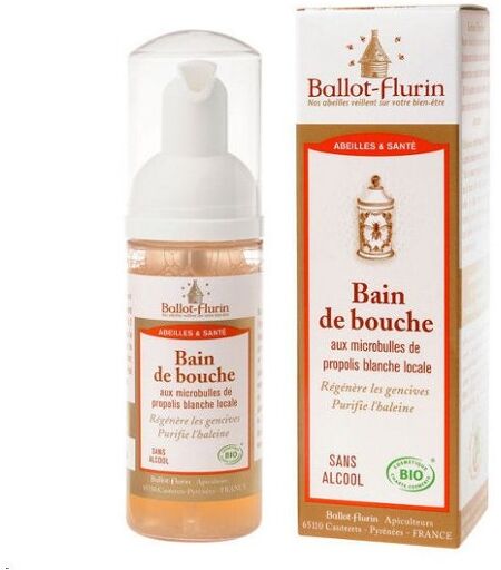 Bain de bouche BIO - 50 ml Les microbulles de propolis blanche, une exclusivité Ballot-Flurin, sont assainissantes, les huiles essentielles de menthe poivrée et de citron sont bien connues pour leurs effets désinfectants, apaisants et... ...