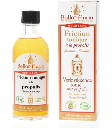 Friction tonique e la Propolis BIO - flacon 100 ml Friction tonique à la propolis Ballot-Flurin est une lotion pour le corps, riche en principes actifs naturels et traditionnellement reconnus pour leurs vertus sur le confort articulaire et... ...