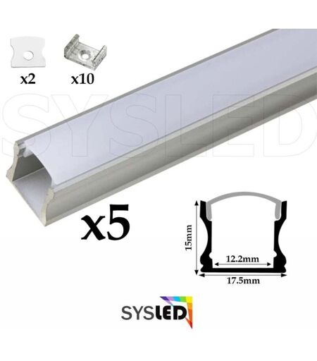 SYSLED Ruban LED 3014 - 244 leds/m - 5 mètres Blanc chaud intérieur (IP20) Alim 15A: Inclus - Profilé: encastrable(5 x 1 mètre)LE79