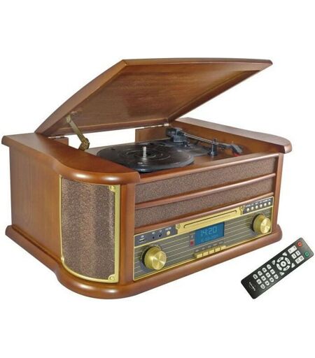 Inovalley - RETRO29E-N Chaîne Hifi vinyle style rétro - Bluetooth 5.0 - 2x20W - Lecteur cd / K7 audio - Radio fm - Port usb 2.0