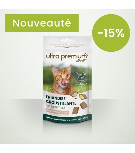 Découvrez les friandises croustillantes pour chat Ultra Premium Direct fabriquées sans céréales, croquantes à l’extérieur et tendres à l’intérieur. ...