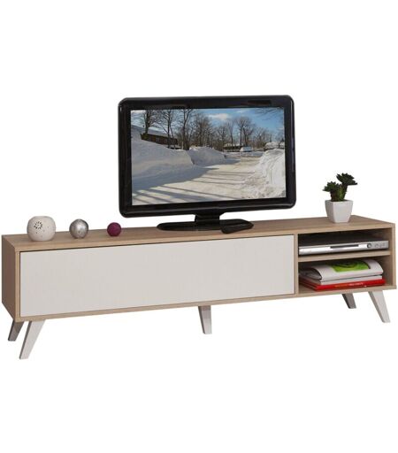 Temahome - Meuble tv pieds inclinés 1 abattant chêne et blanc - storan