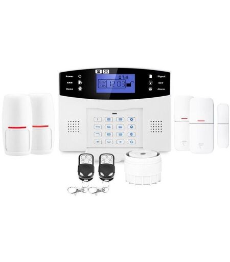 KIT alarme maison sans filLIFEBOX Evolution Ce système d'alarmeGSM d'une capacitéde 99 zones sans fil est constitué de 1 centrale alarme GSM 99 zones avec affichage rétroéclairé à LED 1 transmetteur GSM intégré 1 sirène intérieure de 110dB reliée à la centrale 2 détecteurs infrarouge 2 contacteurs d'ouverture 2 télécommandes 4 boutons 3 autocollants " lieu sécurisé "à poser sur vos vitres et sur la boà®te aux lettres 1 transformateur de 220 Volts 1 manuel d'utilisation en français 1 ensemble vis et chevilles de fixation Toutes les piles et batterie de secours Cette alarme permet de gérer 6 numéros de téléphone (fixe ou mobile) qui seront prévenus en cas d'alarme. Sa gestion se fait par télécommande ou par codes secrets ou par téléphone (fixe ou portable). Ce Kit ALARME MAISON GSM complètement évolutif : Des détecteurs d'incendie, de gaz, bouton panique, bris de vitre, d'inondation peuvent venir optimiser votre protection. Parfait pour protéger une grande surface, une maison, appartement type F2. ATTENTION, il est indispensable de vérifier la couverture réseau (GSM) à l'emplacement de votre future centrale d'alarme, par exemple avec votre téléphone portable. Système d'alarme complet et en français Notre alarme GSM Evolution se distingue par : un système de communication bidirectionnel qui vous permettra dâécouter les bruits dans votre habitation mais aussi dâinteragiravec la ou les personnesse trouvant à proximité de la centrale. d'être prévenu par appel téléphonique (jusqu'à 6 numéros), par SMS (jusqu'à 3 numéros), par notification, d'être alerté en cas de batterie faible, de personnaliser votre message d'accueil, de gérer votre sécurité simplement et uniquement par vous, un mode sécurisé total ou partiel ( Home), lorsque vous êtes chez vous, une batterie de secours en cas de coupure de courant, permettant à votre système de continuer à sécuriser votre maison, une centrale ainsi qu'une notice en français. Alarme sans filavec transmetteur GSM pour carte SIM Elle fonctionne avec une carte SIM (GSM) spécialement dédiée à la centrale (elle fonctionnera comme un téléphone portable pour transmettre les déclenchements dus à une intrusion). Une centrale GSM intègre un transmetteur GSM et un support de carte SIM. La plupart des opérateurs proposent des cartes SIM avec des minis forfaits. L'idéal est d'opter pour un opérateur qui vous assure le meilleur réseau (couverture GSM) et pour un petit forfait SMS illimités + voix (10 minutes environ/mois suffisent).La centrale peut fonctionner sans la carte SIM (aucune transmission) le temps de la recevoir et de programmer son système de sécurité. Il convient d'opter pour une carte de taille standard (les plus grosses). Un système d'alarme évolutif en fonction de votre habitation La centraleEvolutionGSM est une centrale sans fil qui communique avec ses accessoires par fréquence radio. Entièrement autonome, une batterie de secours prendra le relais si une coupure de courant venait à arriver. Sécurisante, la... ...