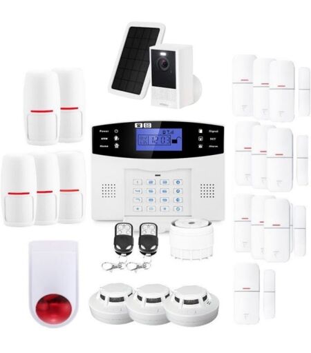 KIT alarme maison sans fil connecté Evolution Ultra Secure Votre maison ou votre appartement est le lieu où vous désirez être en sécurité, que ce soit contre les cambriolages, les départs de feu. Grâce à notre nouvelle alarme GSM Evolution, vous pourrez sécuriser votre domicile facilement et sans avoir d'abonnement d'alarme. Vous pouvez armer / désarmer le système d'alarme par téléphone, SMS, télécommande ou par le bouton de la centrale. Si vous voyagez, partez en vacances ou voulez seulement vous assurer que votre maison est sécurisée pendant que vous êtes absent, ce système est idéal pour vous. Une caméra connectée sans fil et étanche vous permettra de vérifier ce qui se passe, ou lever le doute en cas de signal d'intrusion. Ce kit comprend 1 centrale alarme GSM Lifebox avec affichage rétroéclairé à LED 1 transmetteur GSM intégré 1 sirène intérieure de 110dB reliée à la centrale 5 détecteurs infrarouge 10 contacteurs d'ouverture 3 détecteur de fumée EN 14604 1 sirène extérieure flash 2 télécommandes 3 autocollants " lieu sécurisé "à poser sur vos vitres et sur la boîte aux lettres 1 transformateur de 220 Volts (pour la centrale) 1 Caméra connectée sans fil étanche avec panneau 1 manuel d'utilisation en français 1 ensemble vis et chevilles de fixation Toutes les piles et batterie de secours Une alarme sans fil pour sécuriser votre habitation Ce kit est un kit d'alarme sans fil, c'est à dire que la centrale est raccordé à une prise électrique pour alimenter sa batterie, les détecteurs, la caméra sont sans fil, alimentés par des batteries internes. La batterie de la centrale alimentera la centrale en cas de coupure de courant d'environ 7 heures. Système d'alarme complet et en français Notre alarme GSM Evolution se distingue par : un système de communication bidirectionnel qui vous permettra d?écouter les bruits dans votre habitation mais aussi d?interagir avec la ou les personnes à coté de la centrale par un micro incorporé, d'être prévenu par appel téléphonique (jusqu'à 6 numéros), par SMS (jusqu'à 3 numéros), par notification, d'être alerter en cas de batterie faible, de personnaliser votre message d'accueil, de gérer votre sécurité simplement et uniquement par vous, un mode sécurisé total ou partiel ( Home), lorsque vous êtes chez vous, une batterie de secours en cas de coupure de courant, permettant à votre système de continuer à sécuriser votre maison, une centrale ainsi qu'une notice en français, une caméra qui vous permettra de regarder ce qui se passe chez vous, qu' elle soit dehors ou à l'intérieur et sans fil sans recharger grâce au panneau solaire une double sécurité sur votre système d'alarme, la gestion de la centrale et celle de la caméra étant distincte. Alarme sans fil avec transmetteur GSM pour carte SIM Elle fonctionne avec une carte SIM (GSM) spécialement dédiée à la centrale (elle fonctionnera comme un téléphone portable pour transmettre les déclenchements dus à une intrusion). Une centrale GSM intègre un transmetteur GSM et un... ...