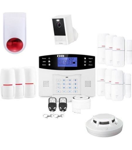 Kit alarme maison sans fil GSM avec caméra idéal pour protéger une maison de 3/4 pièces. Votre maison ou votre appartement est le lieu où vous désirez être en sécurité, mais certains dispositifs de sécurité et services avec abonnement peuvent coûter cher. Grâce à notre nouvelle alarme GSM Evolution, vous pourrez sécuriser votre domicile facilement et sans avoir d'abonnement d'alarme. Vous pouvez armer / désarmer le système d'alarme par téléphone, SMS, télécommande ou par le bouton de la centrale. Si vous voyagez, partez en vacances ou voulez seulement vous assurer que votre maison est sécurisée pendant que vous êtes absent, ce système est idéal pour vous. Ce kit comprend 1 centrale alarme GSM Lifebox avec affichage rétroéclairé à LED 1 transmetteur GSM intégré 1 sirène intérieure de 110dB reliée à la centrale 3 détecteurs infrarouge 6 contacteurs d'ouverture 1 détecteur de fumée EN 14604 1 sirène extérieure flash 2 télécommandes 3 autocollants " lieu sécurisé " à poser sur vos vitres et sur la boîte aux lettres 1 transformateur de 220 Volts pour la centrale 1 Caméra autonome sans fil Vacos 1 manuel d'utilisation en français 1 ensemble vis et chevilles de fixation Toutes les piles et batterie de secours Une alarme sans fil pour sécuriser votre habitation Ce kit est un kit d'alarme sans fil, c'est à dire que la centrale est raccordé à une prise électrique pour alimenter sa batterie, les détecteurs, la caméra sont sans fil, alimentés par des batteries internes. La batterie de la centrale alimentera la centrale en cas de coupure de courant d'environ 7 heures. Système d'alarme complet et en français Notre alarme GSM Evolution se distingue par : un système de communication bidirectionnel qui vous permettra d?écouter les bruits dans votre habitation mais aussi d?interagir avec la ou les personnes à coté de la centrale par un micro incorporé, d'être prévenu par appel téléphonique (jusqu'à 6 numéros), par SMS (jusqu'à 3 numéros), par notification, d'être alerter en cas de batterie faible, de personnaliser votre message d'accueil, de gérer votre sécurité simplement et uniquement par vous, un mode sécurisé total ou partiel ( Home), lorsque vous êtes chez vous, une batterie de secours en cas de coupure de courant, permettant à votre système de continuer à sécuriser votre maison, une centrale ainsi qu'une notice en français. une caméra qui vous permettra de regarder ce qui se passe chez vous, qu' elle soit dehors ou à l'intérieur et sans fil une double sécurité sur votre système d'alarme, la gestion de la centrale et celle de la caméra étant distincte. Alarme sans fil avec transmetteur GSM pour carte SIM Elle fonctionne avec une carte SIM (GSM) spécialement dédiée à la centrale (elle fonctionnera comme un téléphone portable pour transmettre les déclenchements dus à une intrusion). Une centrale GSM intègre un transmetteur GSM et un support de carte SIM. La plupart des opérateurs proposent des cartes SIM avec des minis forfaits. L'idéal est d'opter pour un... ...