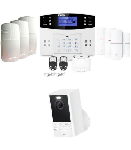 KIT alarme GSM Evolution compatible animaux avec caméra pour sécuriser votre maison ou votre appartement Votre maison ou votre appartement est le lieu où vous désirez être en sécurité, mais certains dispositifs de sécurité et services avec abonnement peuvent coûter cher. Grâce à notre nouvelle alarme GSM Evolution, vous pourrez sécuriser votre domicile facilement et sans avoir d'abonnement d'alarme. Vous pouvez armer / désarmer le système d'alarme par téléphone, SMS, télécommande ou par le bouton de la centrale. Si vous voyagez, partez en vacances ou voulez seulement vous assurer que votre maison est sécurisée pendant que vous êtes absent, ce système est idéal pour vous. Les détecteurs animaux ne prendront pas en compte les déplacements de vos animaux domestiques. Ce pack d'alarme comprends: 1 centrale alarme GSM 99 zones avec affichage rétroéclairé à LED 1 transmetteur GSM intégré 1 sirène intérieure de 110dB reliée à la centrale 2 détecteurs infrarouge avec immunité animale -10kg 2 détecteurs d'ouverture 2 télécommandes 4 boutons 3 autocollants " lieu sécurisé "à poser sur vos vitres et sur la boîte aux lettres 1 transformateur de 220 Volts 1 Caméra connectée sans fil étanche avec autonomie jusqu'à 6 mois 1 manuel d'utilisation en français 1 ensemble vis et chevilles de fixation Toutes les piles et batterie de secours Une alarme sans fil pour sécuriser votre habitation Ce kit est un kit d'alarme sans fil, c'est à dire que la centrale est raccordé à une prise électrique pour alimenter sa batterie, les détecteurs, la caméra sont sans fil, alimentés par des batteries internes. La batterie de la centrale alimentera la centrale en cas de coupure de courant d'environ 7 heures. Système d'alarme complet et en français Notre alarme GSM Evolution se distingue par : un système de communication bidirectionnel qui vous permettra d?écouter les bruits dans votre habitation mais aussi d?interagir avec la ou les personnes se trouvant à proximité de la centrale. d'être prévenu par appel téléphonique (jusqu'à 6 numéros), par SMS (jusqu'à 3 numéros), par notification, d'être alerté en cas de batterie faible, de personnaliser votre message d'accueil, de gérer votre sécurité simplement et uniquement par vous, un mode sécurisé total ou partiel ( Home), lorsque vous êtes chez vous, une batterie de secours en cas de coupure de courant, permettant à votre système de continuer à sécuriser votre maison, une centrale ainsi qu'une notice en français, une caméra qui vous permettra de regarder ce qui se passe chez vous, qu' elle soit dehors ou à l'intérieur et sans fil une double sécurité sur votre système d'alarme, la gestion de la centrale et celle de la caméra étant distincte. Alarme sans fil avec transmetteur GSM pour carte SIM Elle fonctionne avec une carte SIM (GSM) spécialement dédiée à la centrale (elle fonctionnera comme un téléphone portable pour transmettre les déclenchements dus à une intrusion). Une centrale GSM intègre un transmetteur GSM et un support de carte... ...
