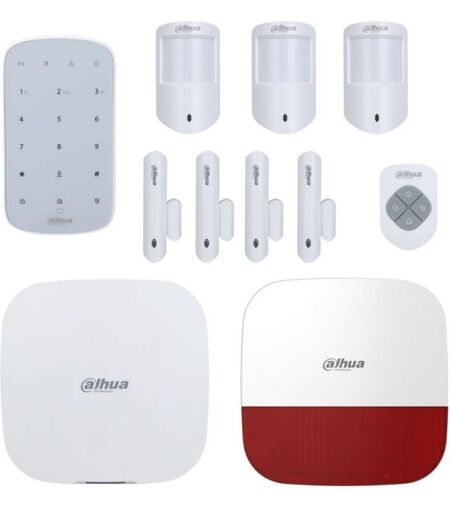 Kit alarme DAHUA - 11 pièces Le kit est composé de : 1 HUB 3 Détecteurs de mouvement 4 contacteurs de porte / fenêtre 1 télécommande 1 clavier déporté 1 sirène extérieure > Prend en charge 150 périphériques sans fil (6 sirènes, 64 porte-clés sans fil). > Affichage de l'état des périphériques (intensité du signal, niveau de la batterie, température, version du programme). > Double SIM et veille simple, commutation automatique. > Réapprovisionnement automatique du réseau (ANR). > Liaison vidéo sur l'application > Alarme d'urgence SOS. > fonction de saut de fréquence et la technologie de communication bidirectionnelle assurent la stabilité de la communication > la mise à jour Cloud et la récupération automatique en cas d'échec de la mise à jour. ...