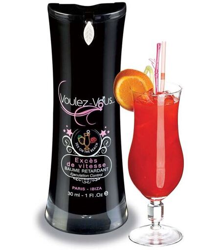 Le Baume retardant Excès de Vitesse sex on the beach 30 ml de Voulez-Vous... vous permettra de durer plus longtemps et de donner encore plus de satisfaction à votre partenaire. Offrez vous une vie sexuelle plus épanouie et un plaisir plus intense ! Le Baume Retardant Excès de Vitesse de la célèbre marque Voulez-Vous... permet de retarder l'orgasme masculin, ainsi l'acte sexuel est plus harmonieux pour le couple. Appliquez sur le pénis puis massez légèrement, insistez particulièrement sur le contour du gland et attendez un moment. Le parfum sucré de ce baume stimule votre désir et vous permet de vous laisser aller à des préliminaires sensuels avec votre partenaire. L'effet désensibilisant de ce baume permet de faire durer le plaisir et de contrôler l'excitation sans faire perdre les sensations. Appliquer 20 minutes avant l'acte pour un effet garanti ! Le Baume Retardant Sex On The Beach Excès de Vitesse est fabriqué à partir d'extraits naturels. Il n'irrite pas vos muqueuses. Compatible avec les préservatifs. Il ne tâche pas. Sans parabènes ni conservateurs. Fabrication française. Ingrédients : Aqua (Water), Glycerin, Butylene Glycol, Menthyl Lactate, PPG-26- Buteth-26, PPG-1-PEG-9 Lauryl Glycol Ether, Aroma (Flavor), Xanthan Gum, Stevioside, Ammonium Glycyrrhizate, Turnera Diffusa Leaf Extract, PEG-40 Hydrogenated Castor Oil, Alcohol, Methylisothiazolinone, Chlorphenesin, Sodium Hydroxide, Parfum (Fragrance), Sodium Chloride, Sodium Sulfate, Anise Alcohol, Benzyl Benzoate, Benzyl Cinnamate, Coumarin, Citral, Eugenol, Limonene, Linalool. May Contain : CI 19140 (Yellow 5), CI 16255, CI 47005 (Yellow 10), CI 61570 (Green 5). ...