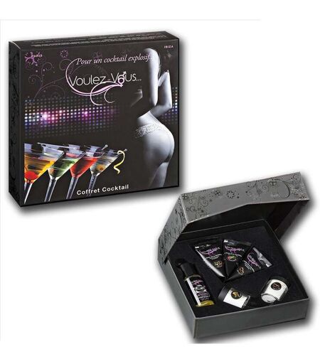 Ce Coffret de Massage Cocktail signé Voulez-Vous... inclus 6 produits de massage pour un cocktail explosif ! C'est le coffret cadeau idéal pour jouer avec vos sens et ceux de votre partenaire. Cette boîte contient l'essentiel pour atteindre les hauteurs de l'érotisme ! La marque Voulez-Vous... propose 13 parfums très originaux. Le Coffret de Massage Cocktail contient : * 3 Berlingots d'huiles corporelles chauffantes "Huile de la tentation", ces berlingots (10 ml) se dégustent tendrement sur le corps de votre partenaire. Si vous soufflez délicatement dessus, une douce sensation de chaleur va s'emparer des zones effleurées. Parfums : Margarita, Mojito et Pina Colada. * 2 Poudres gourmandes "Chute de neige", ces poudres (4 g) sont à saupoudrer délicatement sur le corps de votre partenaire pour qu'une sensation de gourmandise vous envahisse lorsque vous léchez sa peau ! Parfums : Mojito et Pina Colada. * 1 Huile de Massage "Passage sous tes reins" Aphrodisiaque, cette huile de massage (25 ml) stimulera le plaisir. Parfum : Ylang-Ylang & Cola. Les produits Voulez-Vous... sont 100 % Made in France et sans parabène. Vendu dans sa superbe boîte chic ce Coffret de Massage Cocktail est le cadeau romantique idéal. Attention certains goûts de produit dans les coffrets peuvent être exceptionnellement modifiés en cas de rupture de stock. ...
