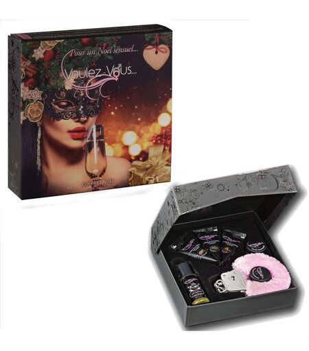 Ce Coffret de Massage Noël Avec Menottes signé Voulez-Vous... inclus 7 produits de massage pour un Noël sensuel ! C'est le coffret cadeau idéal pour jouer avec vos sens et ceux de votre partenaire. Cette boîte contient l'essentiel pour atteindre les hauteurs de l'érotisme ! La marque Voulez-Vous... propose 13 parfums très originaux. Le Coffret de Massage Noël contient : * 3 Berlingots d'huiles corporelles chauffantes "Huile de la tentation", ces berlingots (10 ml) se dégustent tendrement sur le corps de votre partenaire. Si vous soufflez délicatement dessus, une douce sensation de chaleur va s'emparer des zones effleurées. Parfums : Noix de Coco, Crème Brûlée et Fraise Pétillante. * 2 Poudres gourmandes "Chute de neige", ces poudres (4 g) sont à saupoudrer délicatement sur le corps de votre partenaire pour qu'une sensation de gourmandise vous envahisse lorsque vous léchez sa peau ! Parfums : Bubble Gum et Piña Colada.. * 1 Huile de Massage "Passage sous tes reins" Désir, cette huile de massage (25 ml) stimulera le plaisir. Parfum : Vanille. * 1 Paire de menottes. Les produits Voulez-Vous... sont 100 % Made in France et sans parabène. Vendu dans sa superbe boîte chic ce Coffret de Massage Noël est le cadeau idéal pour un Noël sous le signe de la sensualité ! Attention certains goûts de produit dans les coffrets peuvent être exceptionnellement modifiés en cas de rupture de stock. ...