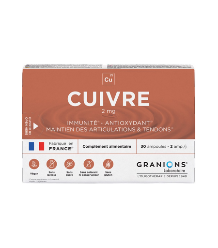 Parapharmacie > Bio & Médecines naturelles > Médecines naturelles > Compléments alimentaires Oligothérapie Granions Cuivre 30 Ampoules - Compléments alimentaires Oligothérapie - Pharmacie en ligne LaSante.net