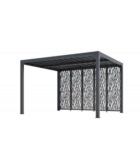 Pergola bioclimatique Habrita Foresta PER 36M30 BI aluminium 10,8m2 avec 5 panneaux moucharabieh gris pour côté 3,60m