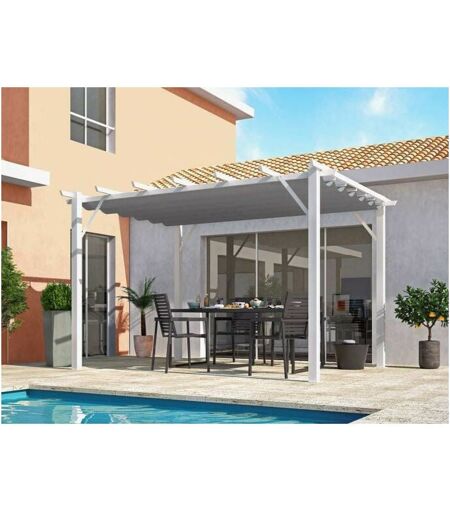 Habrita Foresta - Pergola en aluminium blanc 100x100 mm ép.1,2 mm toiture gris 12 m2 - PER4030WG Les avantages de cette Pergola en aluminium blanc Habrita Foresta PER4030WG sont : - Véritable pergola de décoration équipée de 7 lambourdes - Bâche de couleur pour l'assortir à l'environnement et aux équipements - Parfaite pour protéger du soleil pendant les périodes chaudes - Toile colorée coulissante rétractable facilement et à volonté - Structure 100 % aluminium sauf croisillons et piètements finition époxy (à l'exception des pièces de connexion et des platines de fixation) pour garantir la rigidité de l'ensemble - Toile polyester haute performance 140 gr/m2 - Poteaux aluminium larges 100x100 mm et très stables - Piêtements avec trous pour la fixation au sol - Bandeau avant et arrière pour protéger la toile en position totalement repliée - Livré avec aimant de contact - Design moderne et contemporain s'intégrant parfaitement dans un jardin - Simple à monter - Résistant à la chaleur et ...