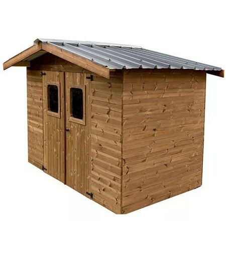 Abri Habrita Foresta THE2420.02T Therma double pente 7,04m2 brun doré Abri de jardin en bois THERMA double pente avec une épaisseur de bois de 19mm dont les dimensions font 2.66x2.79m.Sa toiture en bac acier ou plaque ondulée vous assurera une étanchéité optimale de la toiture . Avantages : Plus résistant et durable. Procédé de traitement 100% naturel dans un four à 215°C. Une plus grande stabilité dimensionnelle des pièces de bois. Respect de l’environnement Très belle finition (impression bois poncé) et peu d'entretien Livré d'origine avec un kit de soubassement (pour ancrage au sol) Très facile à monter grâce au système en panneaux et au faîtage préassemblés, couverture en bac acier ultra-résistante Garantie 10 ans contre l'attaque d’insectes et pourrissement Caractéristiques techniques : Matière : Epicéa traité très haute température à 215°C sans aucun ajout de produit de synthèse. Epicéa massif traité classe II pour la structure des panneaux et la charpente Parois : Panneaux ...