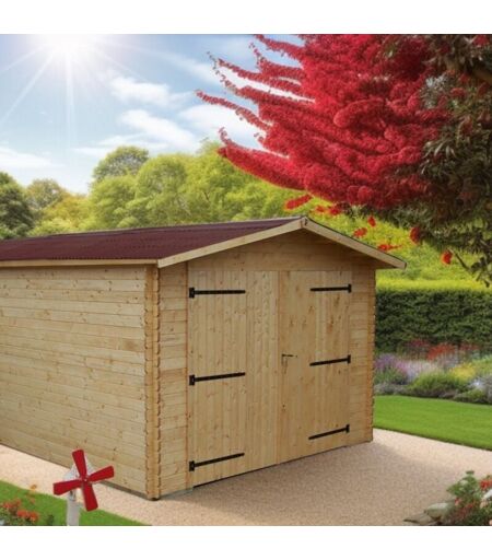 Habrita - Garage Dorna Double Pente 20,97 m² – Épicéa Massif 28 mm – Plaques Ondulées Bitumées – Sans Plancher