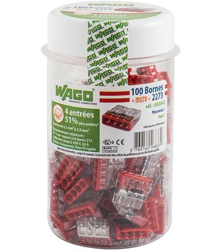 Wago - Pot de 100 mini bornes de connexion automatique 4 entrées S2273