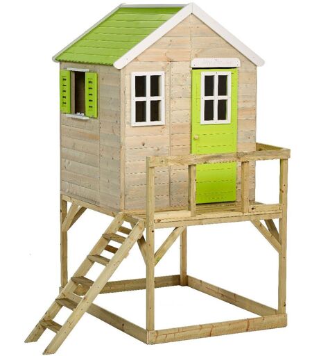 Kangui - Maison De Jardin Enfant Extérieur - Cabane En Bois Avec Plateforme - Toit Étanche - Vert Et Blanc