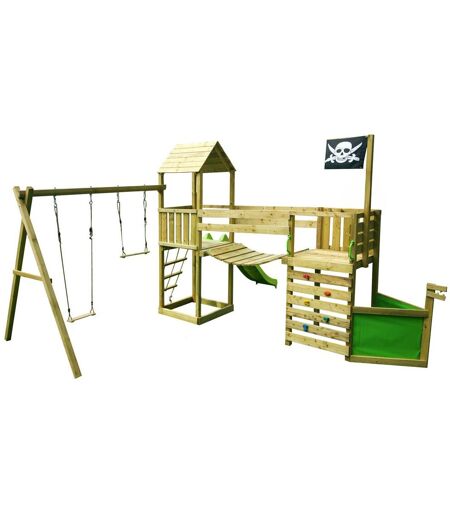 Kangui - Aire De Jeux Pirate En Bois Willi Avec Vigie - Balançoire, Trapèze, Toboggan, Mur D'escalade, Cabane Sur Plateforme, Pont Suspendu