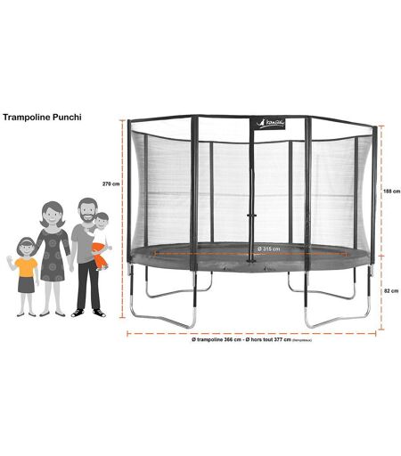 Bénéficiez de près de 20 ans d'expérience et d'innovations de la 1ère marque Française de trampoline : Kangui Assez des trampolines ternes ? Découvrez nos coloris tendances ! Ce trampoline est conçu pour résister aux intempéries et au temps. Les matériaux sélectionnés sont adaptés à une utilisation quotidienne en milieu familial Sa structure robuste (Ø42mm x épaisseur 1,40mm) et ses 6 poteaux du filet (Ø32mm x épaisseur 1,2mm) sont en acier galvanisé à chaud L'arceau en fibre de verre évite la descente et le déchirement du filet Les poteaux du filet sont habillés de chaussettes PVC pour éviter l'effritement des mousses au soleil. La bague de fixation des poteaux de filet met fin au point de fragilité habituellement constaté avec une fixation par vis 4 Pieds en W stables. Coussin de protection épais (22mm), résistant au temps et au U.V. avec une bavette intérieure de sécurité pour limiter l'accès aux ressorts Une échelle avec de larges marches PVC qui contrairement à l'acier ne rouillent pas. Une couverture de propreté avec oeillet central pour l'évacuation des eaux de pluie et pour protéger votre trampoline des intempéries. Et si en plus d'amuser vos enfants le trampoline vous aidait à garder la forme ? Le trampoline est un jeu ludique pour vous et vos enfants, il améliore la coordination des mouvements, l'équilibre, l'élimination des toxines et il aide au développement de votre masse musculaire Les détails en + Garantie : Armature acier: 3 ans - Tapis, filet, coussin : 1 an Membre de la commission Européenne, Kangui respecte la norme EN 71-14 et ses trampolines sont certifiés CE par le CRITT. Interdit aux enfants de moins de 36 mois et aux femmes enceintes Poids maximum conseillé : 100kg Pièces détachées disponibles 2 ans ...