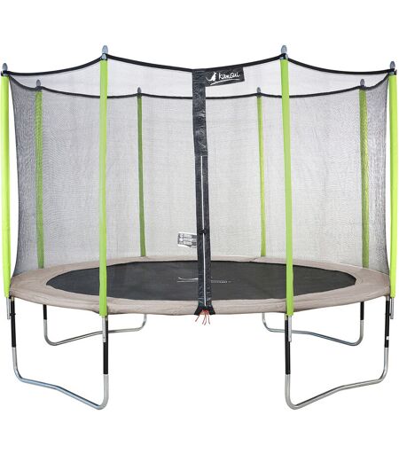 Trampoline de jardin 426 cm + filet de sécurité jumpi Taupe/Vert 430. Trampoline certifié par le critt sport & loisirs - Kangui