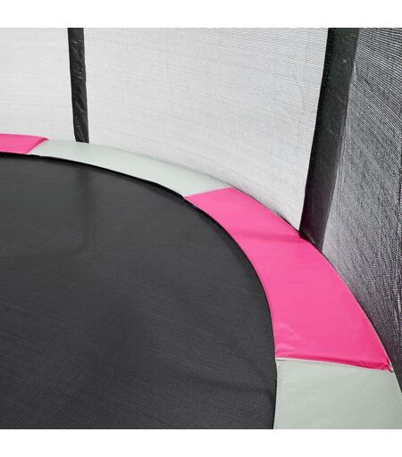 Avec le temps, votre coussin s'abîme par les UV et les frottements... Gràce à notre coussin universel, vous allez pouvoir remplacer celui-ci à moindre frais. Le dessus est en PVC 310gr/m2 rose et gris et le dessous en PE. Ce coussin universel est adapté aux trampolines de diamètre 3.05cm. - Largeur du coussin : 29 cm - Epaisseur de la mousse :18 mm pour un bon amortissement sécuritaire. - Nombre de sections : 8 - Attaches : élastiques noires ATTENTION : Assurez vous bien que les dimensions soient compatibles avec votre trampoline . ...