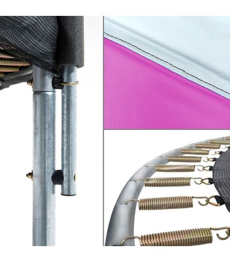 Trampoline de jardin rond avec filet de sécurité : ? Pour un usage facile et durable, toute la structure acier du trampoline et du filet est solide et galvanisée à chaud intérieur/extérieur (ne rouille pas). Toutes les parties métalliques sont solidaires. ? Tapis de saut en PERMATRON très résistante renforcée sur le pourtour par une sangle et 8 rangs de coutures ? Pour favoriser la dynamique de saut, les ressorts en acier galvanisé sont coniques et traités "gold". Leur taille (140mm) et leur nombre (88) sont parfaits pour bien rebondir. ? Pour que toute la famille s'amuse en toute sécurité, notre coussin de protection recouvre parfaitement le cadre et les ressorts. La mousse en polyéthylène expansée de 18 mm d'épaisseur et 29 cm de largeur préviendra des petits bobos. Le tout est habilement fixé au cadre par des attaches élastiques. ? Pour faire du sport sereinement, le trampoline est sécurisé par un filet haut (1,80m à partir du tapis) et à petites mailles pour éviter de passer même un petit doigt. L'accès au trampoline est facile grâce au zip de la porte. Sa petite cordelette rouge permet de vite repérer entrée et sortie. Les 3 accessoires indispensables du trampoline : ? Echelle adaptée pour l'acces au tapis de saut ? Bâche de protection avec oeillet central. ? Kit d'ancrage. Les atouts du trampoline RALLI : ? Le savoir faire et l'assurance d'une marque reconnue pour ses trampolines de qualité ? Le plaisir incontestable d'un jeu de plein air plébiscité par les jeunes. ? Son rapport qualité/prix : un trampoline pas cher, fiable et sécurisant. ? Sa taille avantageuse qui conviendra aux grands jardins ? Sa facilité d'usage : solidaire pour le déplacer (tondre...), peu d'entretien, suivi assuré en France avec pièces de rechange pendant 2 ans minimum. Notice de montage et les conseils d'utilisations en français. ...