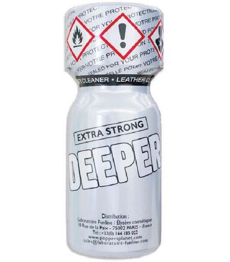Intensifiez votre plaisir en repoussant les limites... Le poppers est un produit aphrodisiaque procurant une sensation d'euphorie et de chaleur intense et stimulant les pulsions sexuelles tout en désinhibant vos instincts cachés. Le Poppers Deeper est composé à 100% de nitrite d'amyle, ce qui en fait l'un des plus puissants. Il est particulièrement apprécié par les amateurs de sodomie profonde ! Tous les poppers vendus sur notre site sont conformes aux normes en vigueur en France et dans la communauté européenne. Il s'agit de poppers authentiques sélectionnés pour leurs qualités. Testez par vous-même et vous verrez la différence ! Attention : pour un effet plus fort, certaines personnes inhalent directement le produit en plaçant le flacon ouvert sous leur narine. Nous ne recommandons pas cette utilisation, qui peut provoquer des gerçures sur la peau au niveau de la narine, et à terme des lésions des voies respiratoires. En flacon de 13 ml. À conserver au réfrigérateur. Utilisez l'Inhalateur à Poppers (https://www.sexyavenue.com/fr/triune-inhaler-for-poppers.html) pour consommation sûre et facile ! ...