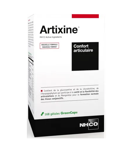 Avec l'âge ou l'usage physiologique des articulations, s'installent une raideur et une diminution de la souplesse articulaire. De manière constante, ou par période, on peut éprouver une gène et une sensibilité à chaque mouvement. La recherche NHCO Nutrition® a mis au point ARTIXINE®, une formule réunissant 12 ingrédients d'intérêt : • La Glucosamne et la chondroïtine naturellement présentes dans les cartilages.• 3 acides aminés dont la Méthionine, acide aminé soufré essentiel associée à la Proline et la Glycine, 2 acides aminés constitutifs du collagène.• Des plantes reconnues telles que la griffe du chat qui aide au maintien de la flexibilité des articulations et de l'harpagophytum qui participe à la santé des articulations, associés au curcuma.• Des minéraux amino-chélatés® dont le Zinc qui intervient dans le maintien des tissus osseux normaux, le Manganèse qui contribue à la formation normale des tissus conjonctifs et le Cuivre qui participe à leur maintien. ...