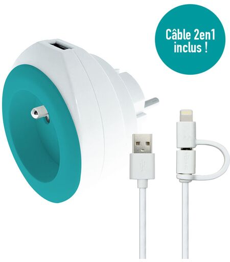 WATT & CO Prise bewatt + chargeur usb turquoise - Watt and Co