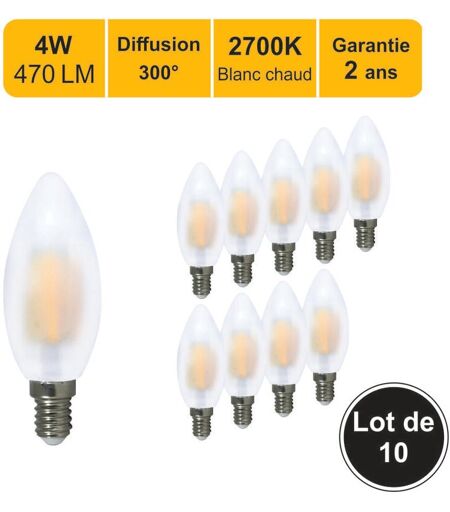 Lutece-arc - Lot de 10 ampoules led filament E14 4W 470Lm 2700K - garantie 2 ans