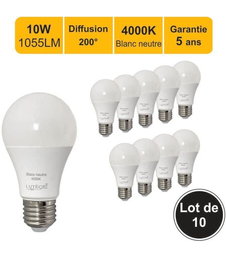 Lutece-arc - Lot de 10 ampoules led E27 11.1W 1055Lm 4000K - garantie 5 ans