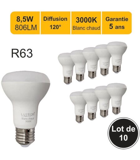 Lutece-arc - Lot de 10 ampoules led E27 R63 8,5W (équiv. 60W) 806Lm 3000K - garantie 5 ans