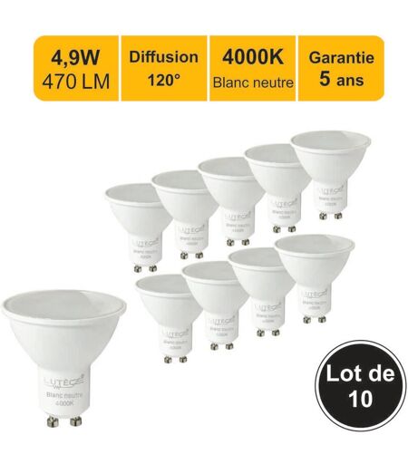 Lutece-arc - Lot de 10 ampoules led GU10 4.9W 470Lm 4000K - garantie 5 ans