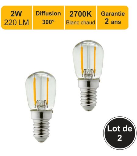 LUTECE-ARC Lot de 2 ampoules led filament E14 2W 220Lm 2700K - ST26 Frigo / Machine à coudre - garantie 2 ans