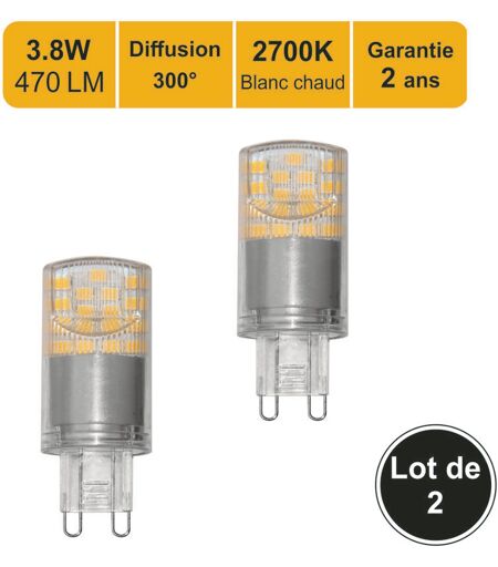 LUTECE-ARC Lot de 2 ampoules LED G9 3,8W capsule 470Lm 2700K - garantie 2 ans